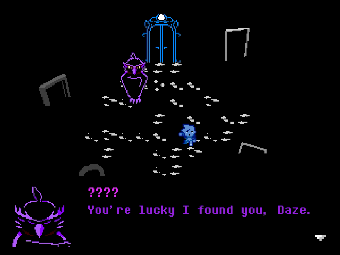 The first place I went to was actually playing Everhood 2! I have some... mixed feelings about that game myself (the first game's still amazing though!), but the thing I want to focus on was naming your own character. Whenever a game gives me the option to name my character, most of the time I use "Greeny", but this time I went with "Daze". I didn't think this change would really matter at first, but whenever the game would use that name, it just... felt right. It didn't feel out of place to me and I felt happy whenever my name got mentioned.